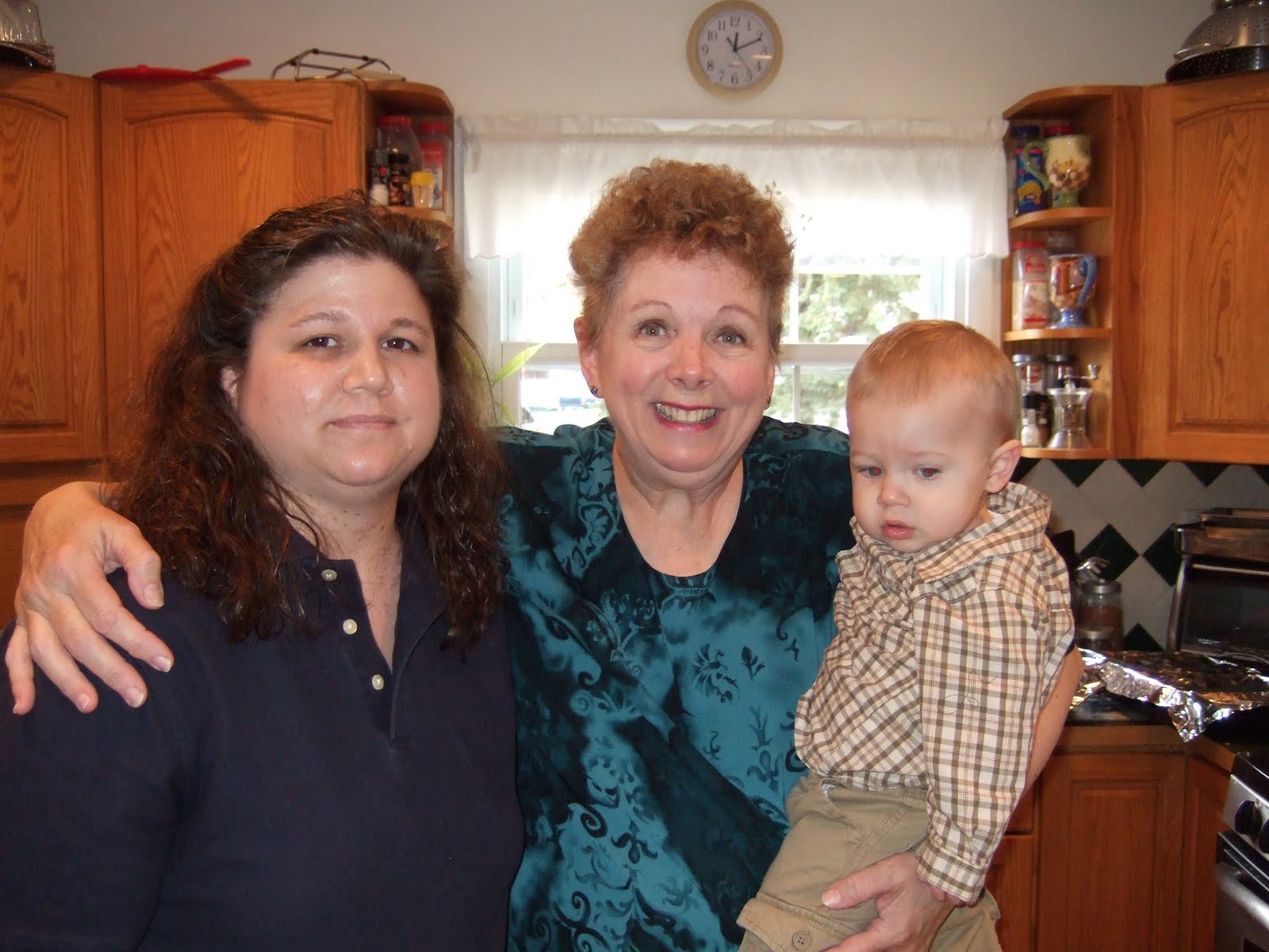 Here he is with Grandma and Auntie Dana being his typical anti-picture self.